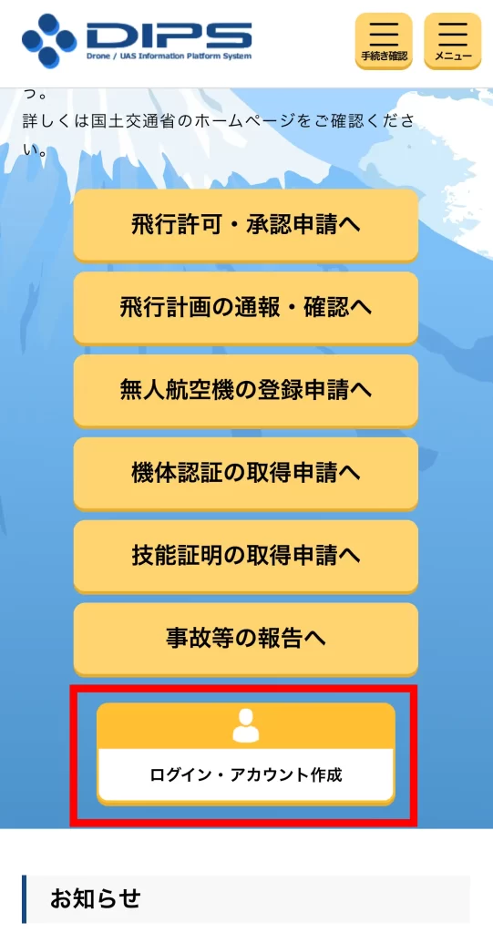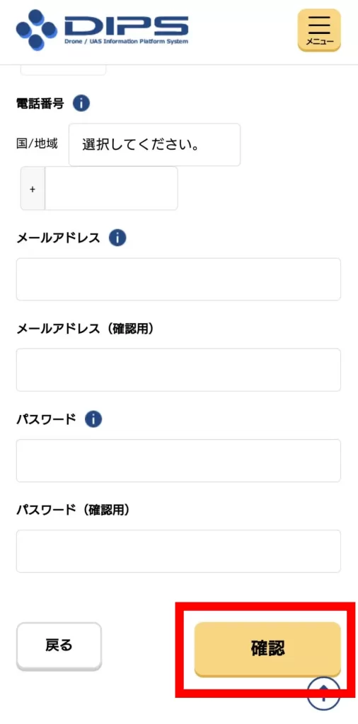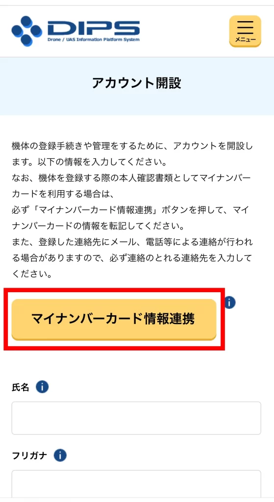 また、DIPSアカウントができたら、続けて機体登録手続きも必要になります。
