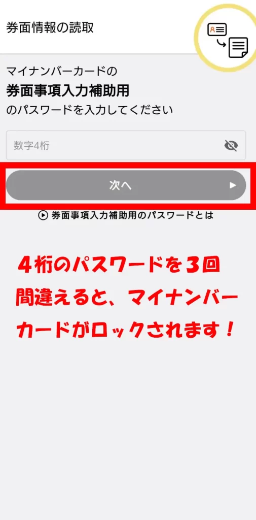 ※暗証番号を3回間違えるとロックがかかり、役所で解除手続きが必要になります。ご注意ください。