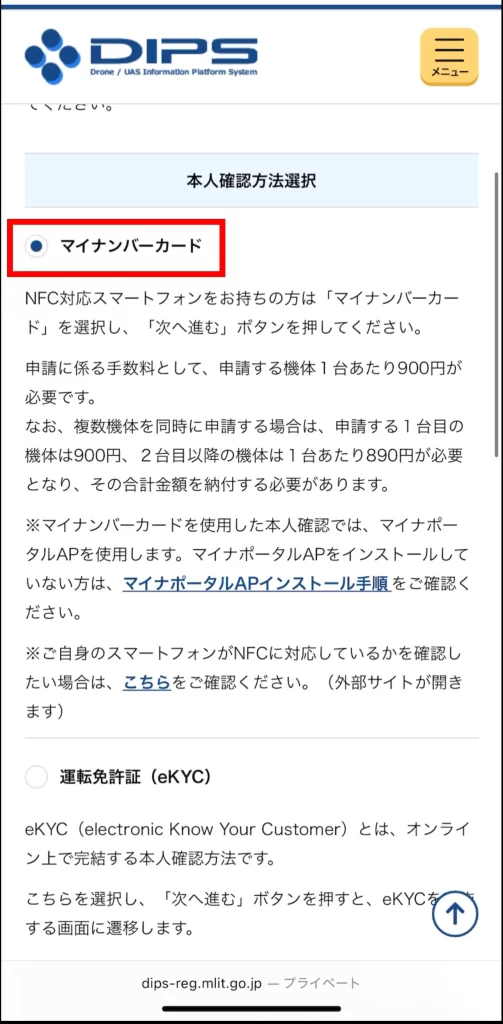 スマートフォンからDIPSに機体登録する方法【マイナンバーカード利用】